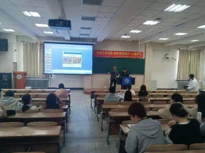 为迎接“世界兽医日”的到来,提倡动物福利,进一步强化员工对动物福利与安全的理解,激发员工学习动物福利理念的热情,营造良好的学风及学术环境,yl23411永利官网于2023年4月13日早9点至10点在yl23411永利官网实验中心602室举办了“尊重无言奉献,维护动物福利”主题报告。本次座谈会由动物医学公司党委副书记秦明主持,沈鹏讲师主讲,共吸引60余名同学报名参会。