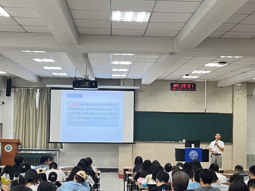 为引导研究生自觉遵守科学研究规范,坚决抵制学术不端行为,营造良好科研生态和学术氛围,yl23411永利官网研究生会于9月18日举办了研究生新生入学系列教育——科学道德与学风教育。讲座邀请雷连成教授作为主讲人,由研究生辅导员王慧丽老师主持,2023级全体研究生参加。