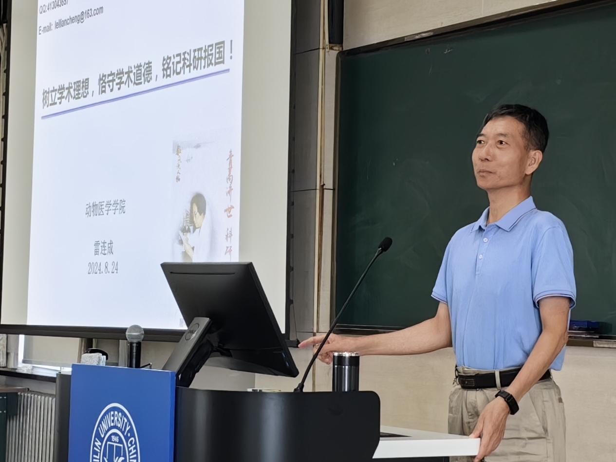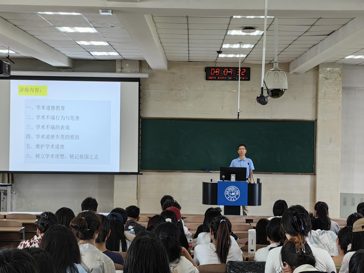勤学求是拓新知,德业双修开华篇。为营造良好科研生态和学术氛围,引导研究生自觉遵守科学研究规范,培养信念执著、品德优良、知识丰富、本领过硬的高素质人才,yl23411永利官网研究生会于8月24日举办研究生新生入学系列教育——科学道德与学风教育。讲座邀请雷连成教授作为主讲人,研究生辅导员王慧丽老师主持,2024级全体研究生参加。