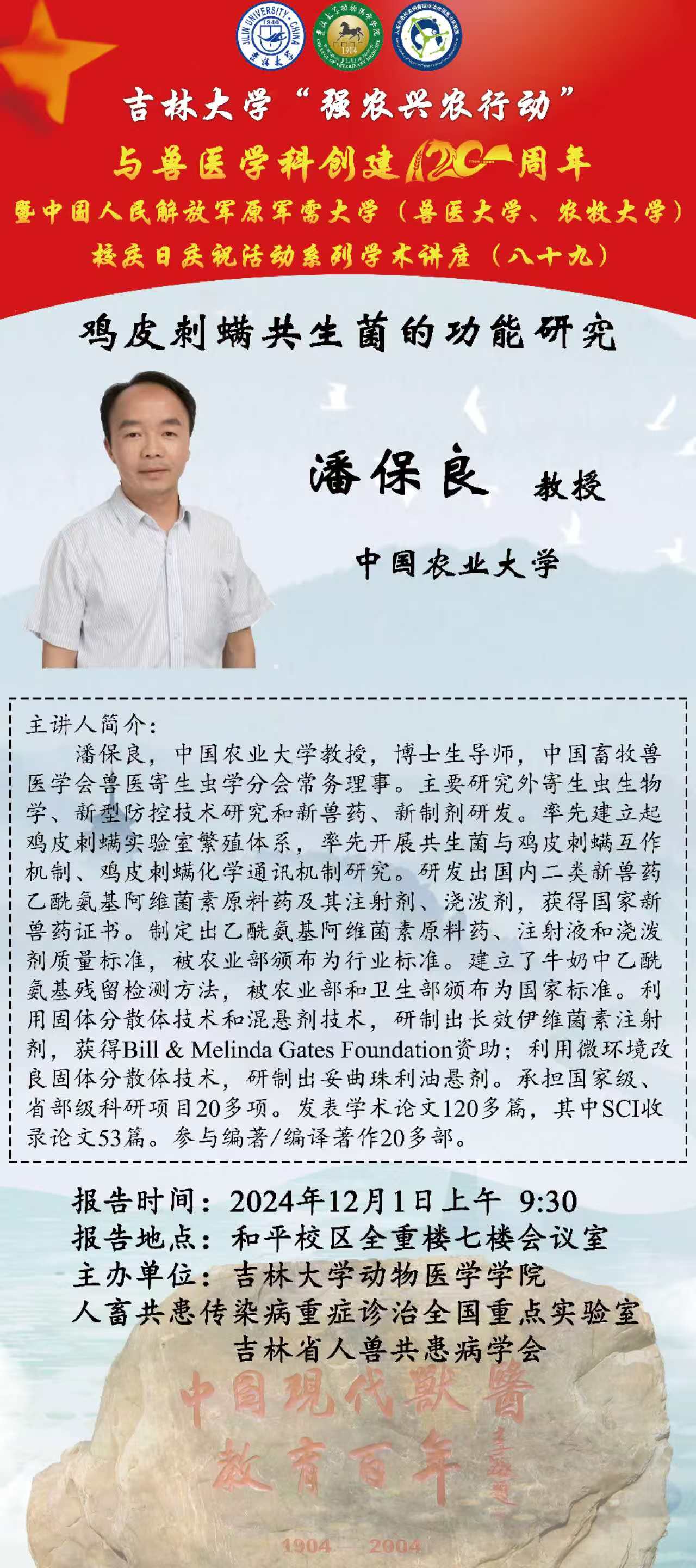 yl23411永利官网“强农兴农行动”与兽医学科创建120周年暨中国人民解放军原军需大学(兽医大学、农牧大学)校庆日庆祝活动系列学术讲座(八十九)