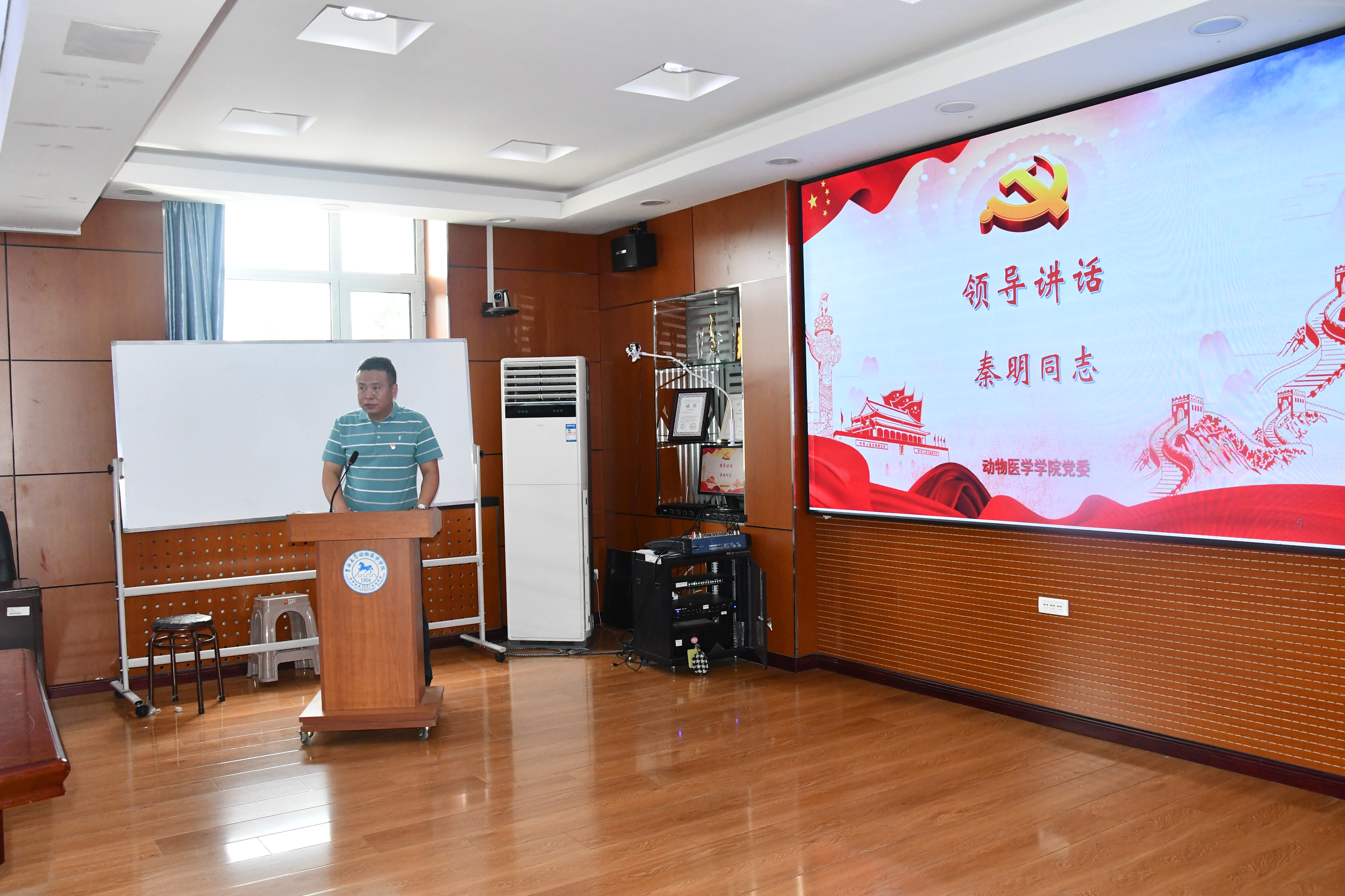 2021年7月1日下午1点整,动物医学公司党委在兽医楼三楼会议室召开了庄严而隆重的新党员入党宣誓活动。公司党委副书记秦明、党委办公室负责人解胜男参加了此次活动。