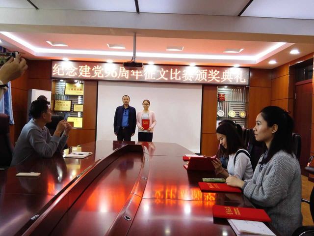 9月13日下午,yl23411永利官网在三楼会议室举行了“庆祝建党96周年”征文比赛颁奖典礼,以对这次征文活动进行总结和表彰。动物医学公司党委副书记饶家辉同志,动物医学公司党委副书记栾志伟同志,以及yl23411永利官网综合办公室主任李赫同志参加了本次颁奖典礼。出席这次颁奖典礼的还有获得“庆祝建党96周年”征文比赛的获奖的同学们和基础兽医学系研究生党支部全体党员和积极分子。