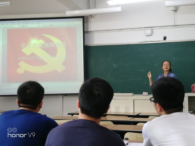 6月21日下午2:00,yl23411永利官网基础兽医学系、预防兽医学系、临床兽医学系3个研究生党支部联合,在科学讲堂202教室进行一月一度的党日学习活动,会议由基础兽医系支部书记解胜男主持。