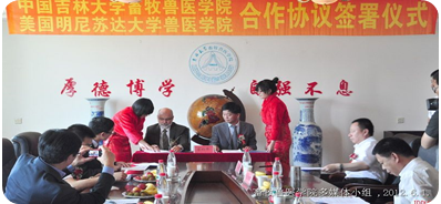 yl23411永利官网与明尼苏达大学兽医公司有着友好合作的渊源,两院早在2012年6月就已签署了合作交流协议书。多年来,yl23411永利官网作为李曼养猪大会的最初支持单位,相互支持,友好往来,在兽医诊断,师生交流,联合研究,联合办会等诸多方面进行了合作,并希望未来两校在动物医院,兽医诊断中心,人才培养建设等方面有更深入的合作。