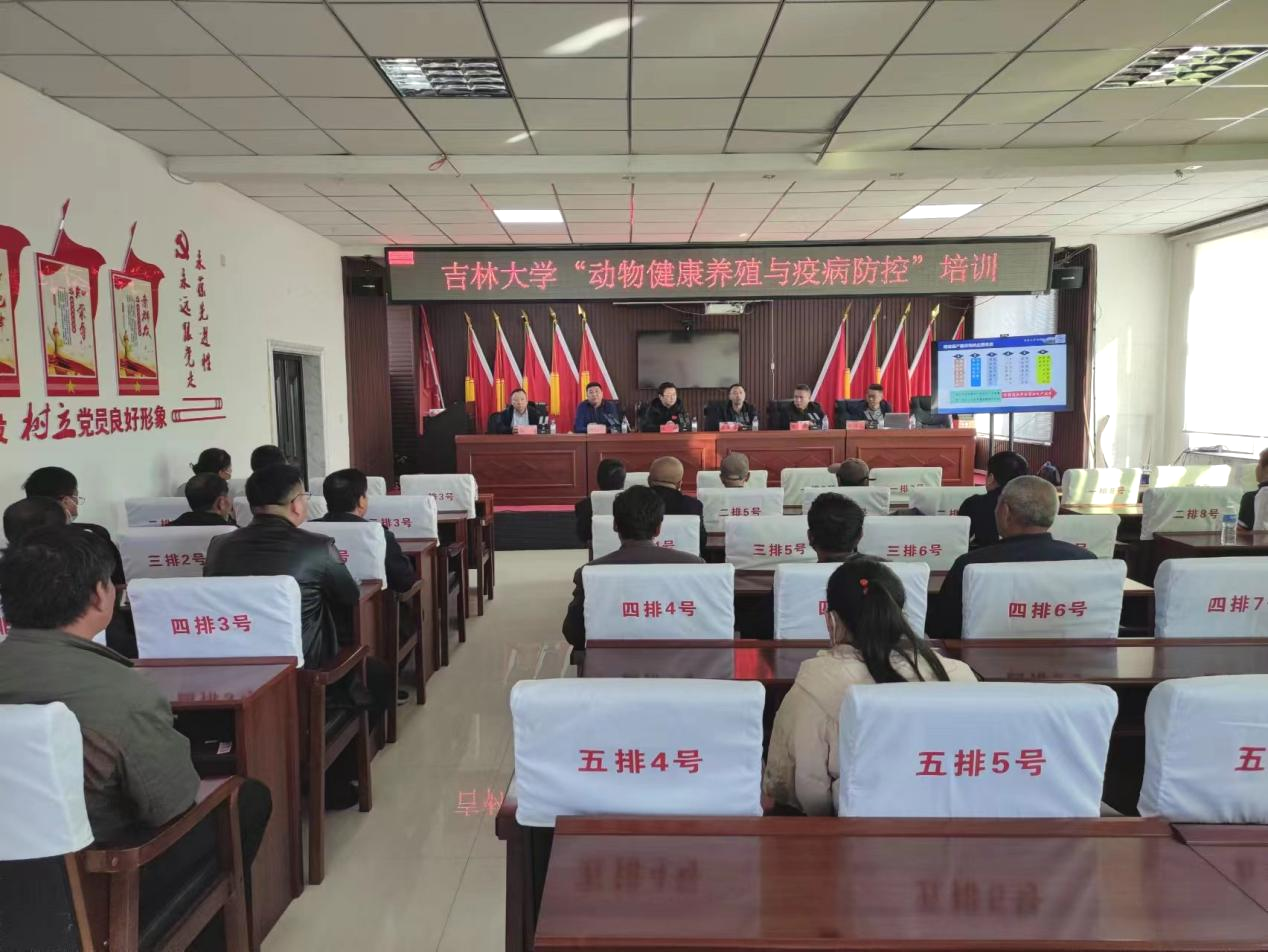 10月22-23日,动物医学公司党委书记饶家辉、副书记秦明、中国畜牧兽医学会兽医病理学分会理事长高丰、吉林省生猪产业体系岗位专家郭昌明一行前往公司定点帮扶县通榆新华镇开展“动物健康养殖与疫病防控”专题培训。yl23411永利官网农业实验基地主任、通榆县副县长田进,新华镇党委书记薛炳龙、副镇长马丽、桑树村党支部书记魏振清陪同,全镇近50名养殖人员及兽医工作者参加培训。
