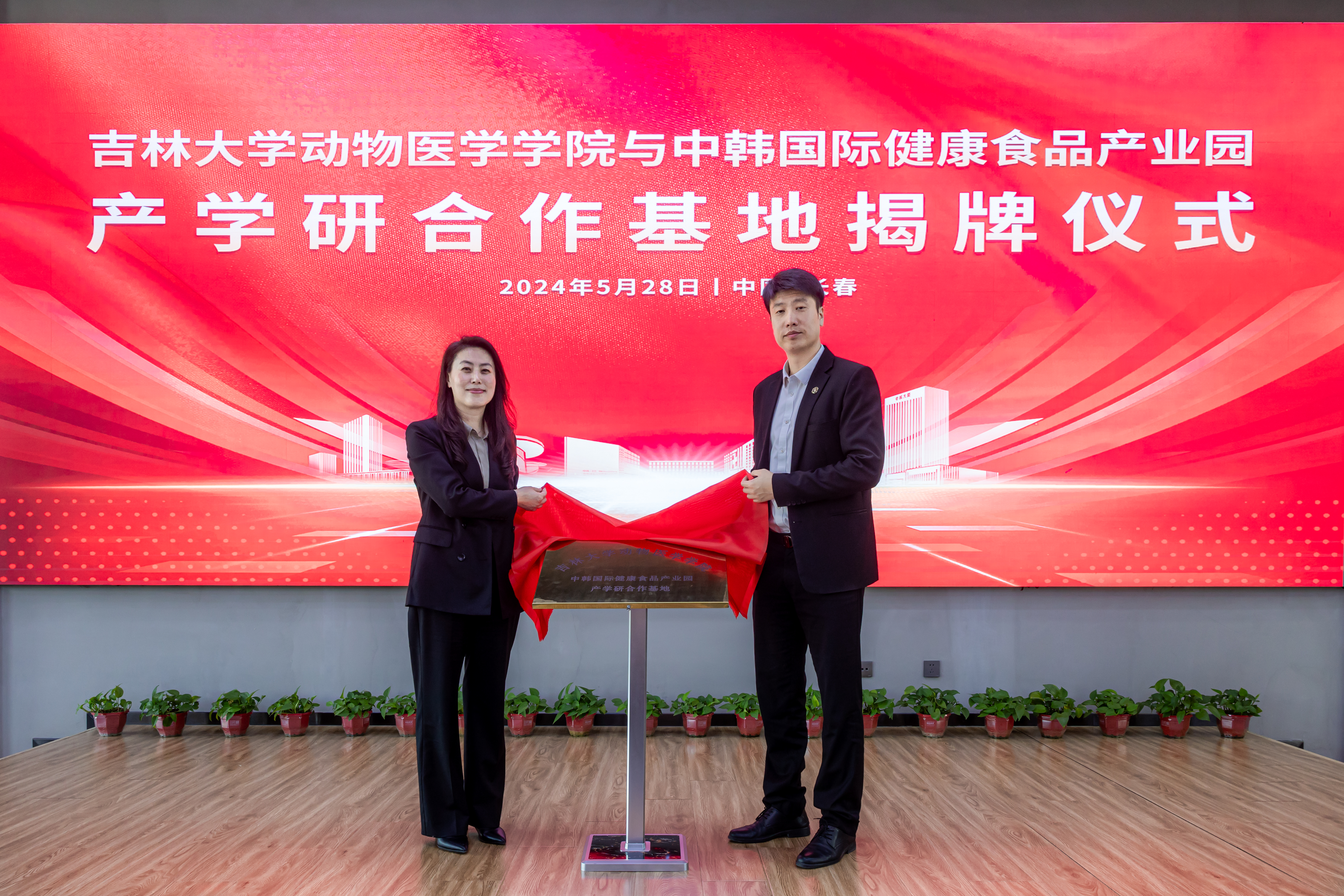 此次调研活动的亮点在于产学研合作基地的正式揭牌。公司与中韩示范区共同为基地揭牌,标志着双方正式建立了在科研、人才培养、技术创新等多方面的紧密合作关系。这不仅为双方合作提供了坚实平台,更为未来合作注入了强大动力。在此之前公司已经为中韩所辖两家企业输送和培养了多名研究生,并有两项成果成功进行转化。