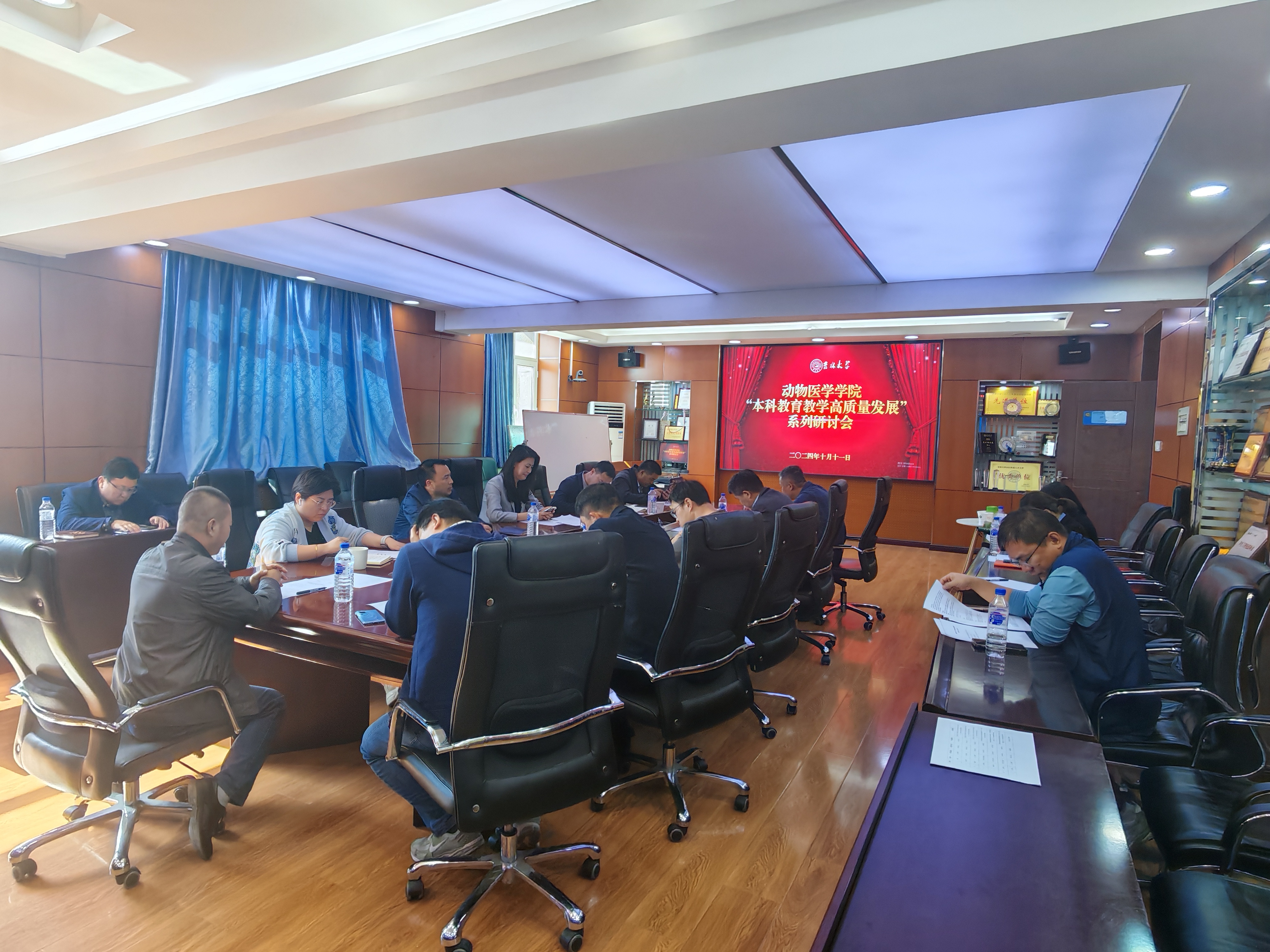 为进一步强化人才培养中心地位,凝聚全院上下对于本科公司产品工作的发展共识与行动自觉,大力推进本科公司产品改革,切实提高办学水平和本科人才培养质量,yl23411永利官网于2024年10月11日上午,在兽医楼三楼会议室,召开了“本科公司产品高质量发展”系列专题第三场研讨会,公司领导、教学委员会全体委员和各系主任参加了会议。会议由贺文琦副经理主持。