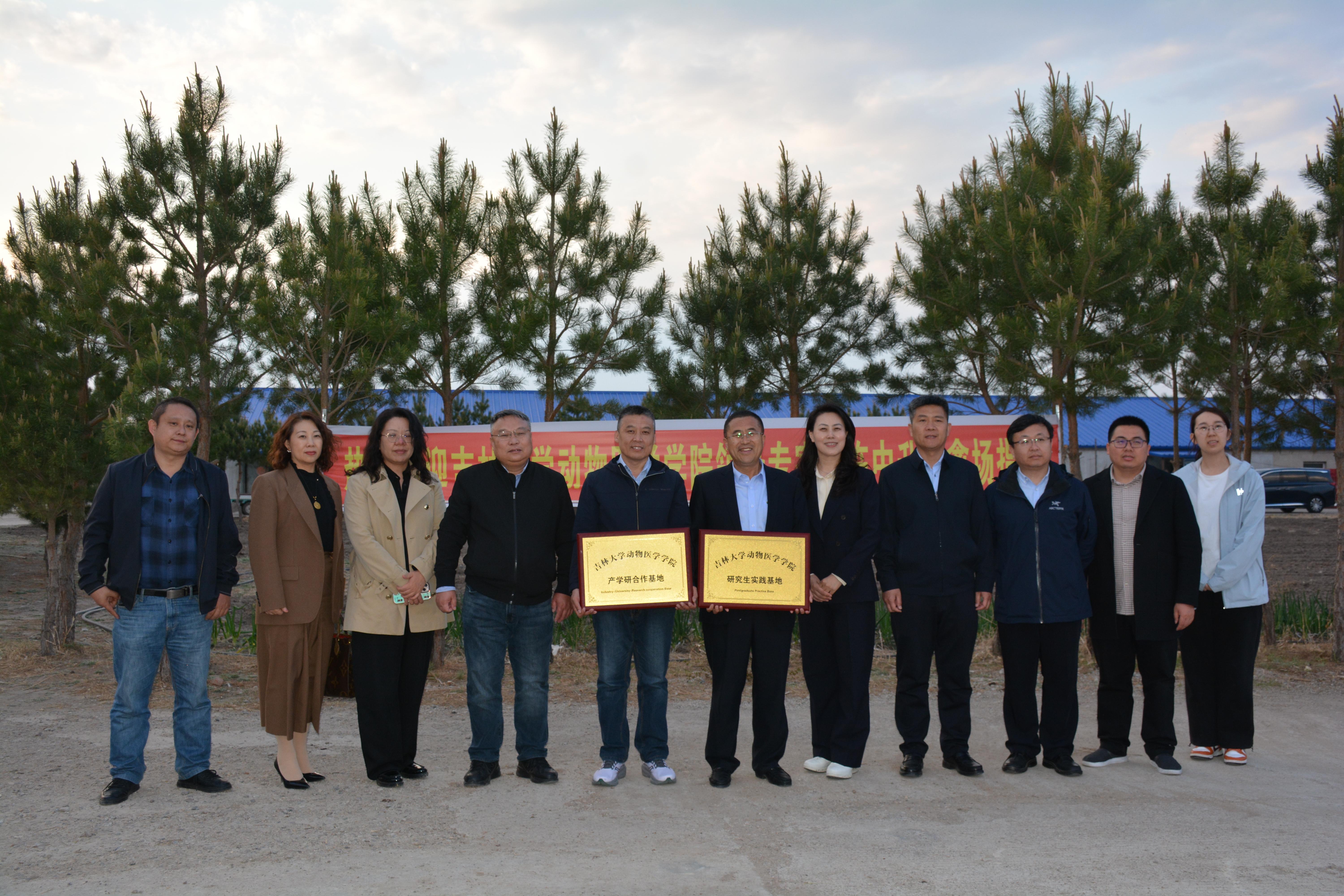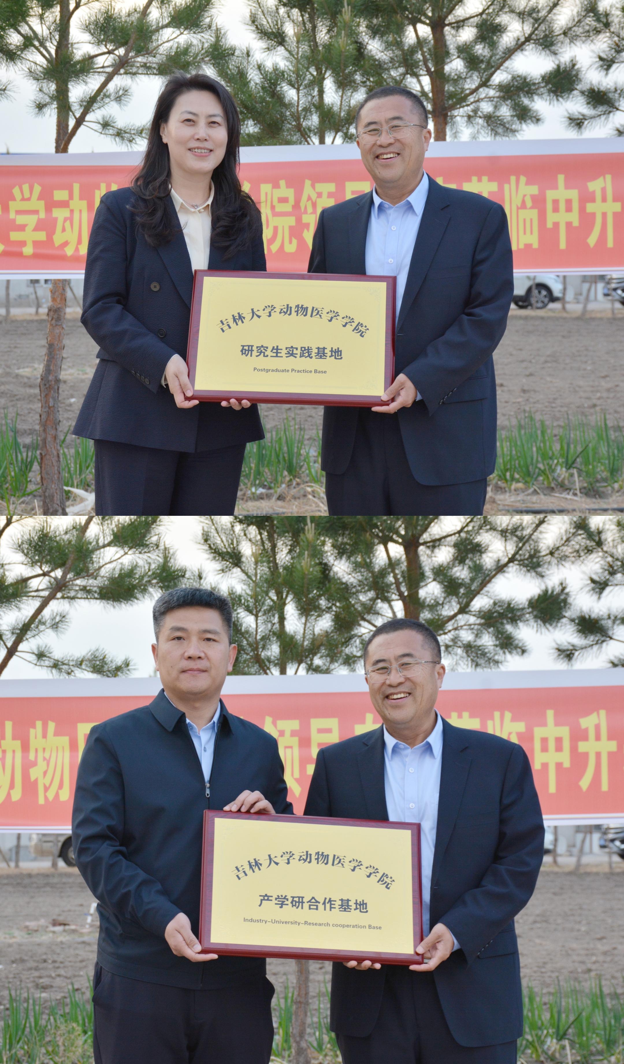 活动中,李建华经理和王化磊副经理分别为通榆中升养禽场颁发研究生实践基地和产学研合作基地牌匾。此次授牌标志着校企双方在人才培养、技术服务、科研合作等方面迈出了实质性的一步。双方将依托产学研合作基地,共同开展通榆县畜牧兽医领域的技术研发与创新,推动科技成果的转化与应用。同时,研究生实践基地的建立,将为研究生提供宝贵的实践机会,帮助同学们将理论知识与实际操作相结合,提升综合素质和实践能力。